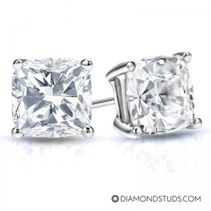 Also known as “pillow-cut”, this square shaped finish is a timeless look that does glamour with a modern edge. There is much to expect with the market value of these brilliant earrings, set in 14k white gold.