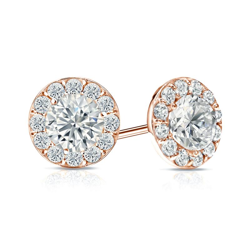 14k Rose Gold Halo Round Diamond Stud Earrings